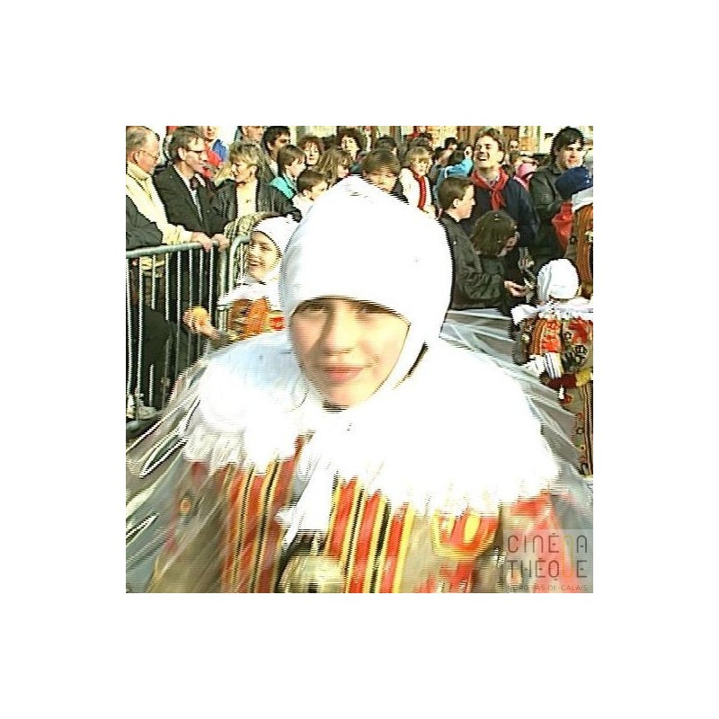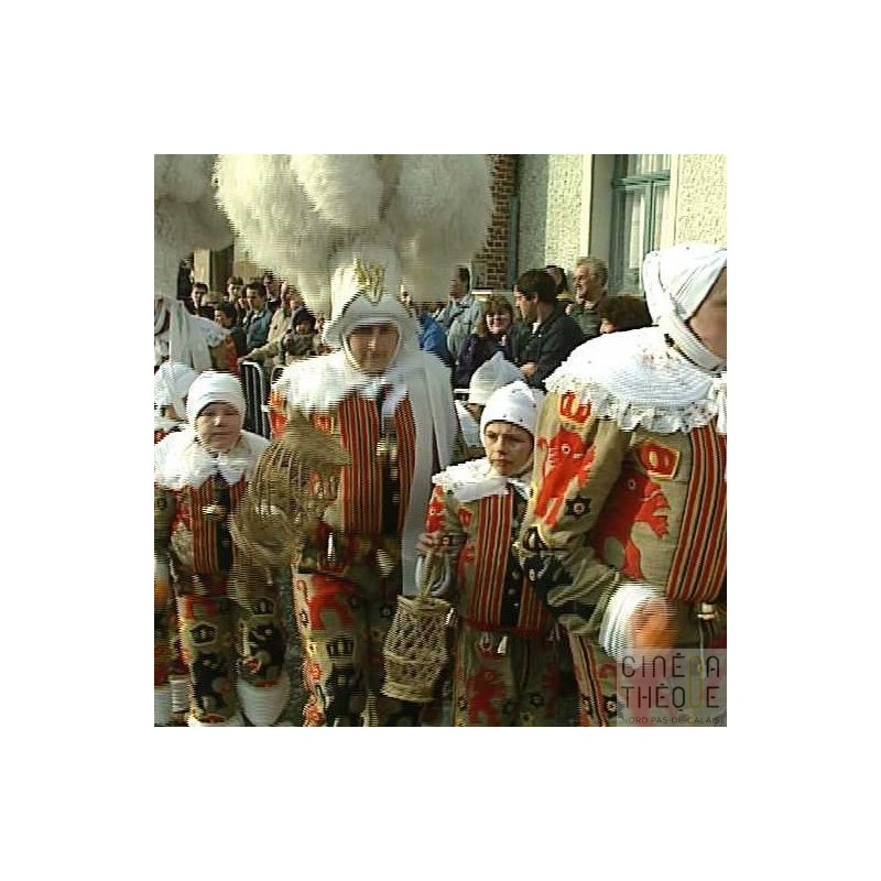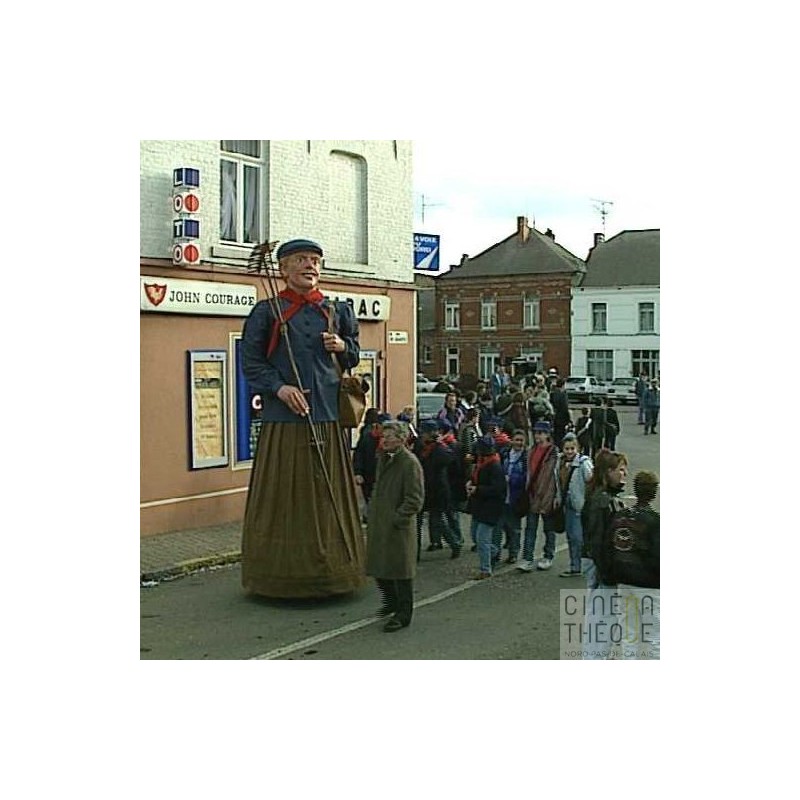 Fête foraine, manèges, enfants. La fanfare, les 'Gilles' distribuent des oranges. Le cortège,le géant 'Jean-Jean' en tête. Extérieur café et intérieur d'un bar. Drapeaux tricolores flottant au vent.