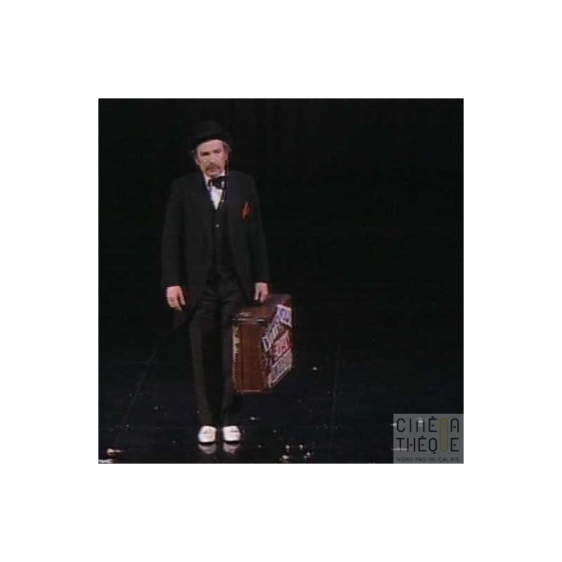 Extraits du spectacle. Interview de l'humoriste; admiration pour Charlie Chaplin, Laurel et Hardy...