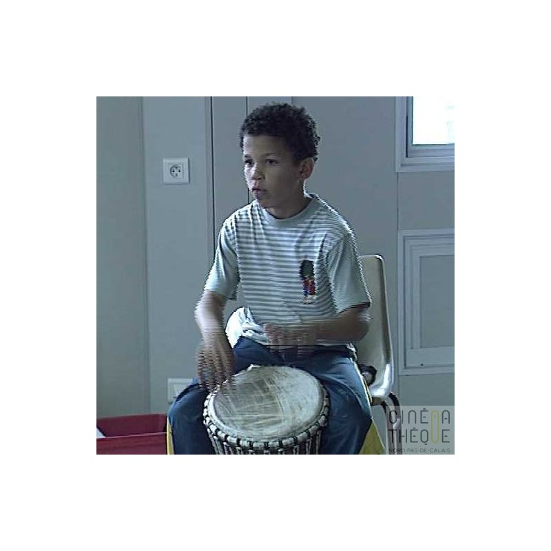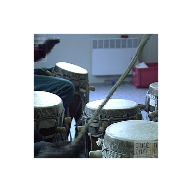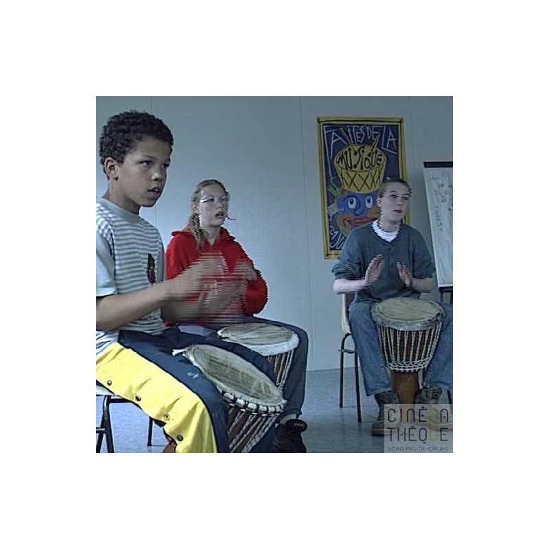 Des jeunes s'initient à la pratique du djembé, instrument traditionnel de percussion africain.
