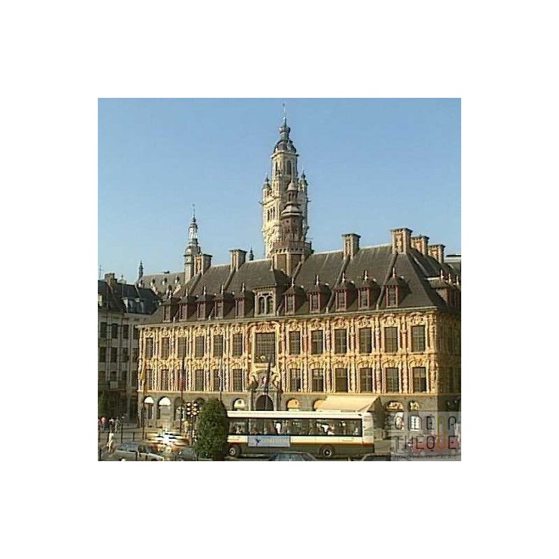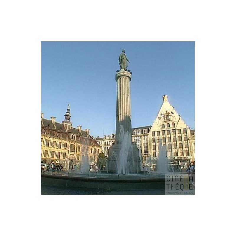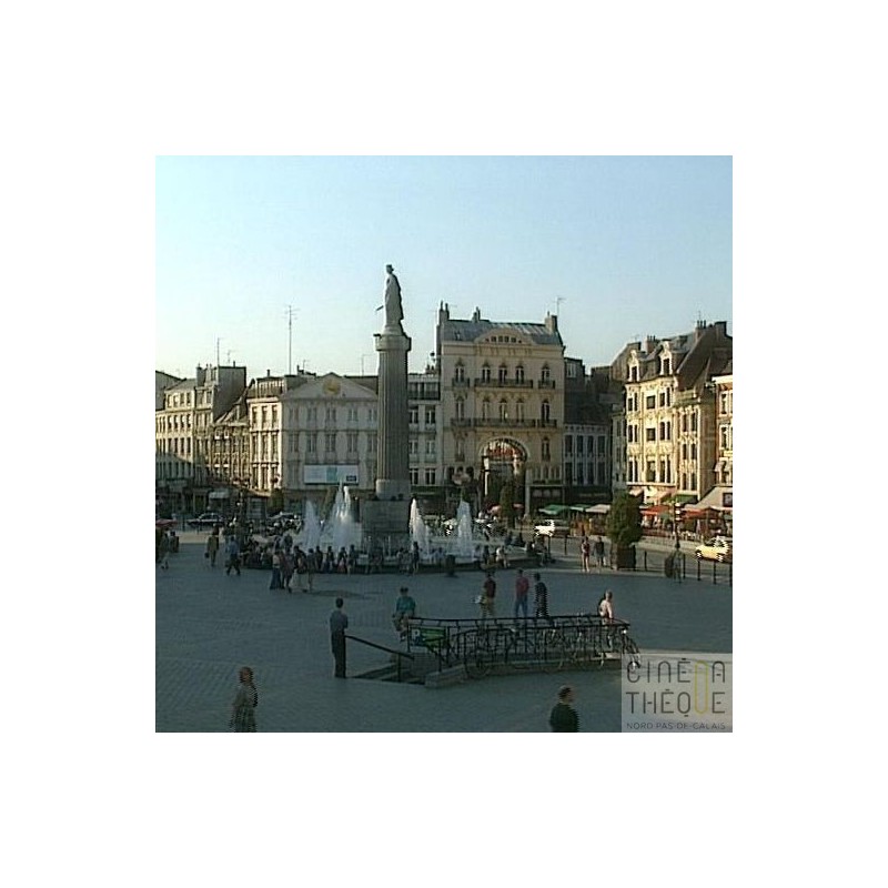 Différents plans de la Grand Place de Lille, ses monuments et facades d'immeubles. La vieille Bourse. Les rues alentours, les terrasses des bars et cafés, les badauds. Détails en gros plans des facades et monuments. Calais : images du groupement statuaire "les Bourgeois de Calais", d'Auguste Rodin. Gros plans, détails.