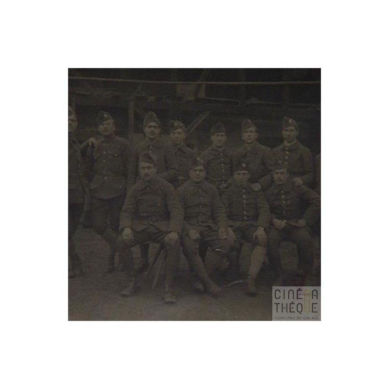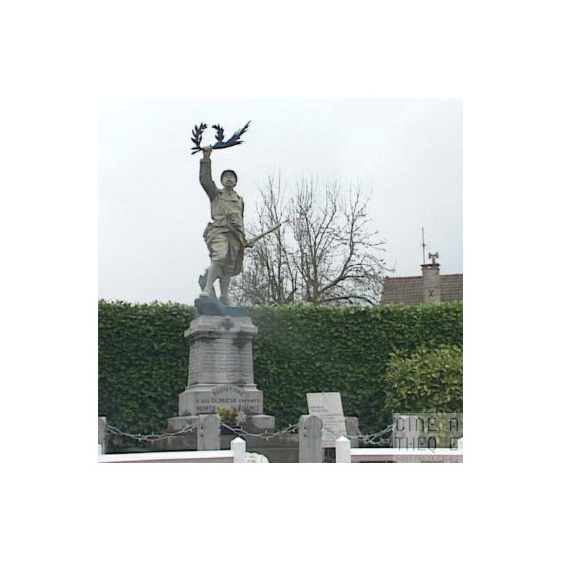 Long plan sur une photo de régiment de la Première Guerre Mondiale. Divers plans sur le fascicule de mobilisation de monsieur Elie Leclercq. Divers plans d'une église. Divers plans du monument aux morts.