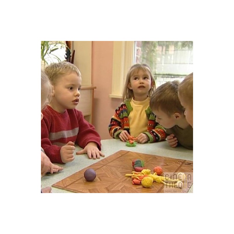 Marcelle Maillet travaille sur la pâte à modeler avec des maternelles. Interview de l'institutrice et de Marcelle Maillet.