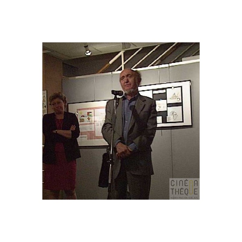 Suite discours (rushes 1). Discours d'une autre femme : « Festival du petit vaurien ». Remercie Albert Jacquard. Discours d'un homme : Quel est le sens de cette manifestation ? Notre pédagogie « Freinet » est internationale. Eloge des différences. Discours de Albert Jacquard : le monde d'aujourd'hui n'est pas acceptable. Un enfant, la santé, la culture n’ont pas de valeur. Le but d’une société n’est pas l’argent, mais la vraie richesse. Suite de l'exposition. Les enfants se servent au buffet. Images de dessins d'enfants Ukrainiens exposés. Un poème. Des peintures. Des jouets exposés.