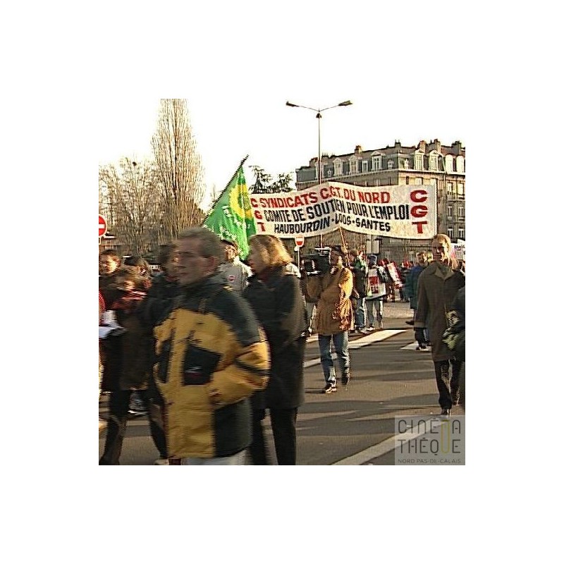Suite aux déclarations de Lionel Jospin, les militants de la CGT défilent dans les rues de Lille, contre le chômage. Interviews; "Les gens ne réclament pas de l'assistanat (...)mais de l'emploi. Et si on ne peut pas (...), qu'on leur donne de quoi vivre décemment". "Y'a pas eu de problème pour renflouer le Crédit Lyonnais". "Que des promesses, mais rien de concret".